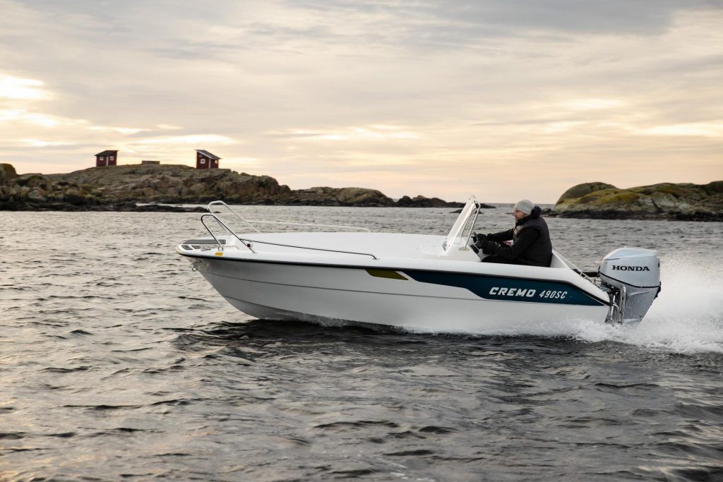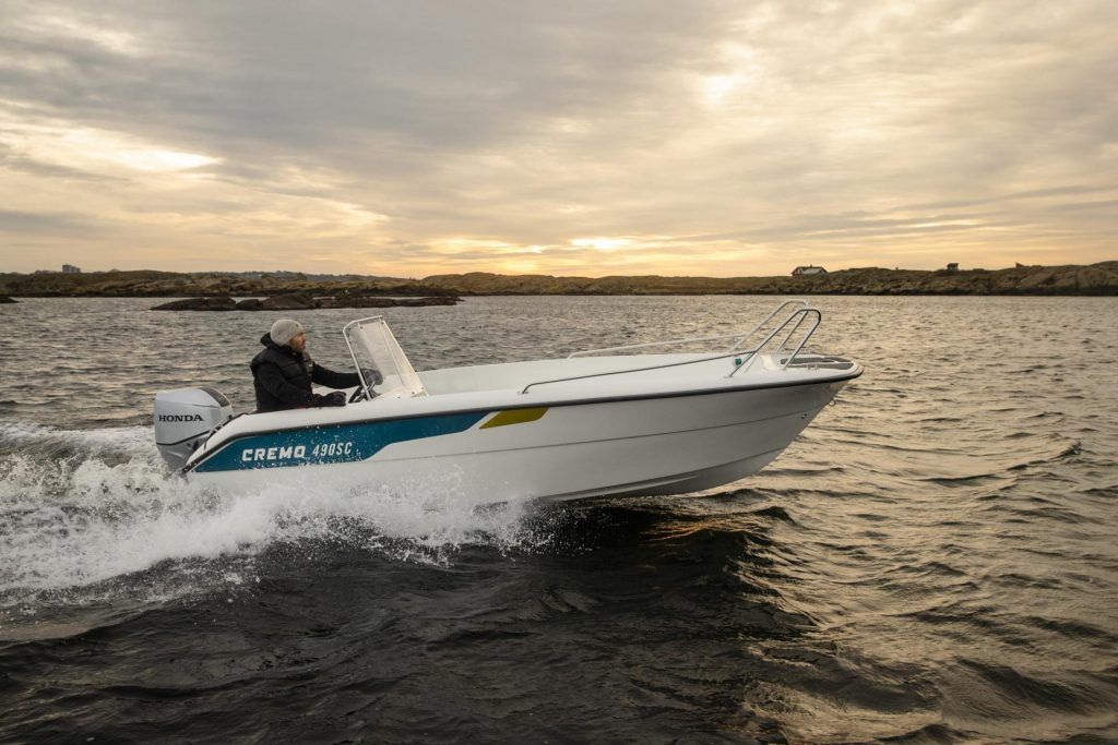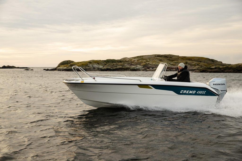 Das durchdachteste, breiteste und geräumigste Steuerboot seiner Klasse, zugelassen für insgesamt sechs Personen. Das Boot wurde von Pelle Petterson entworfen und läuft konstant in hohen Geschwindigkeiten auf dem Meer, während es Sie und Ihre Familie, Freunde, Taschen und den Hund auf navigierte Abenteuer mitnimmt. Egal, ob Angeln, wilder Wassersport oder ein entspannter Tagesausflug ist, CREMO 490SC ist das perfekte Boot, um Erinnerungen zu schaffen. Hier ist das Modell mit einem größeren Innenvolumen als bei anderen Bootsmarken.