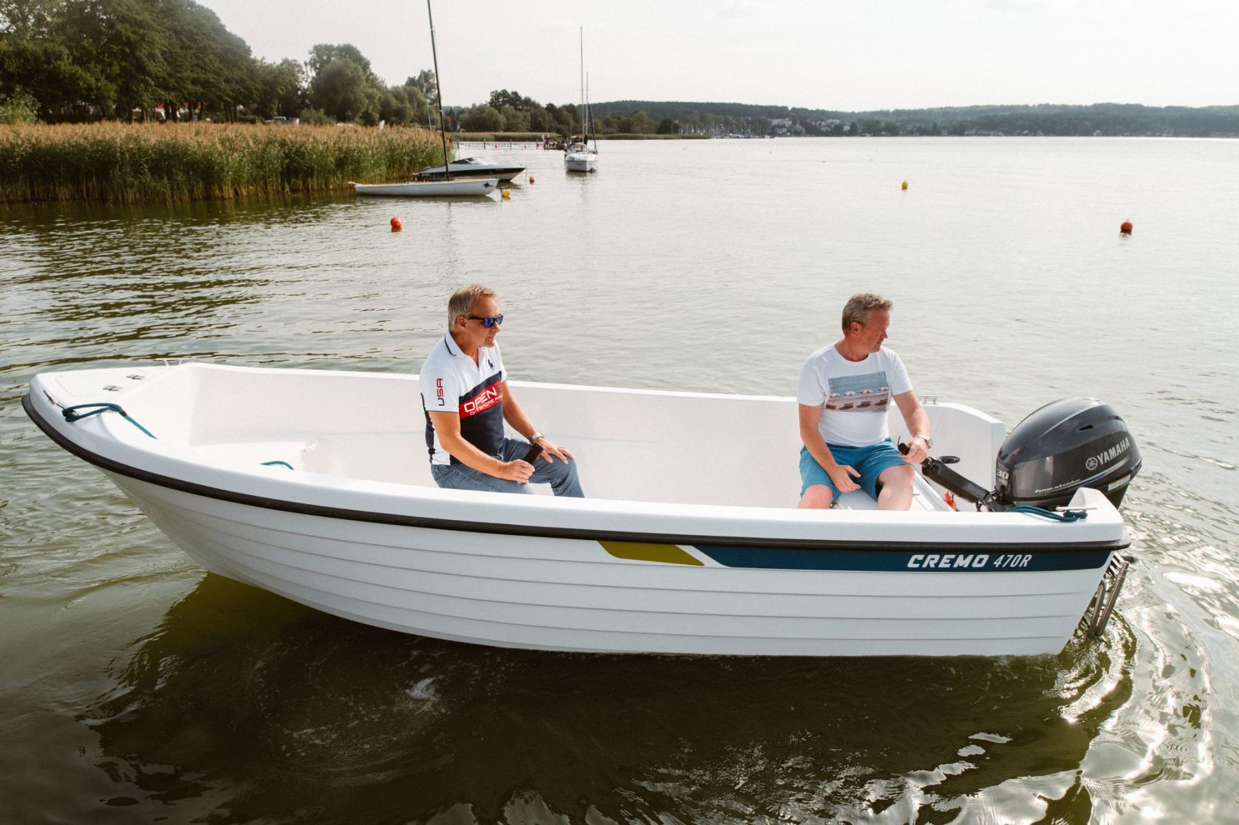 Ein lang erwartetes Steuerboot, das dank eines breiten Rumpfes ungewöhnlich stabil ist. Es ist einfach zu fahren und der starke Kiel sorgt dafür, dass es leicht den Kurs hält. Das 470R hat mehrere verschiedene Einsatzbereiche. Aufgrund seines niedrigen Gewichts lässt es sich sowohl auf dem See als auch auf einem Anhänger leicht handhaben. Mit einem Steuerruder erhält man zudem viel Platz im Boot und kann sich frei bewegen. Es basiert auf demselben bewährten Rumpf wie das 470 SC.