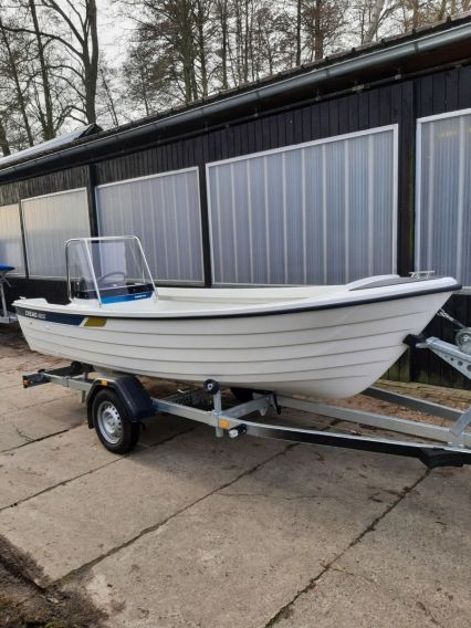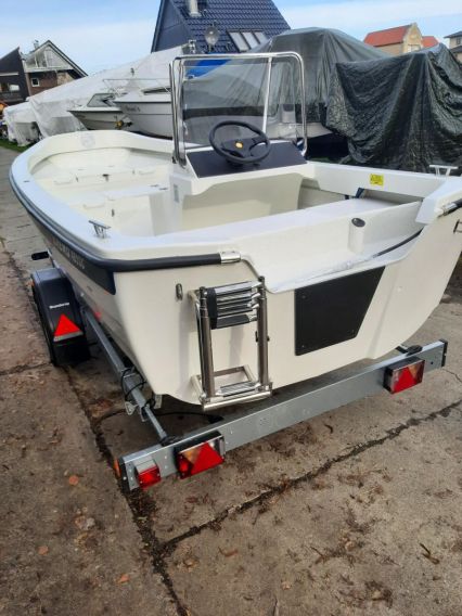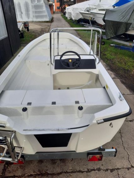 inklusive: Steuerkonsole mit Windschutzscheibe, Lenkung, Rettungsleiter, Soft Laminat auf Vordeck, automatische, elektrische Bilgenpumpe