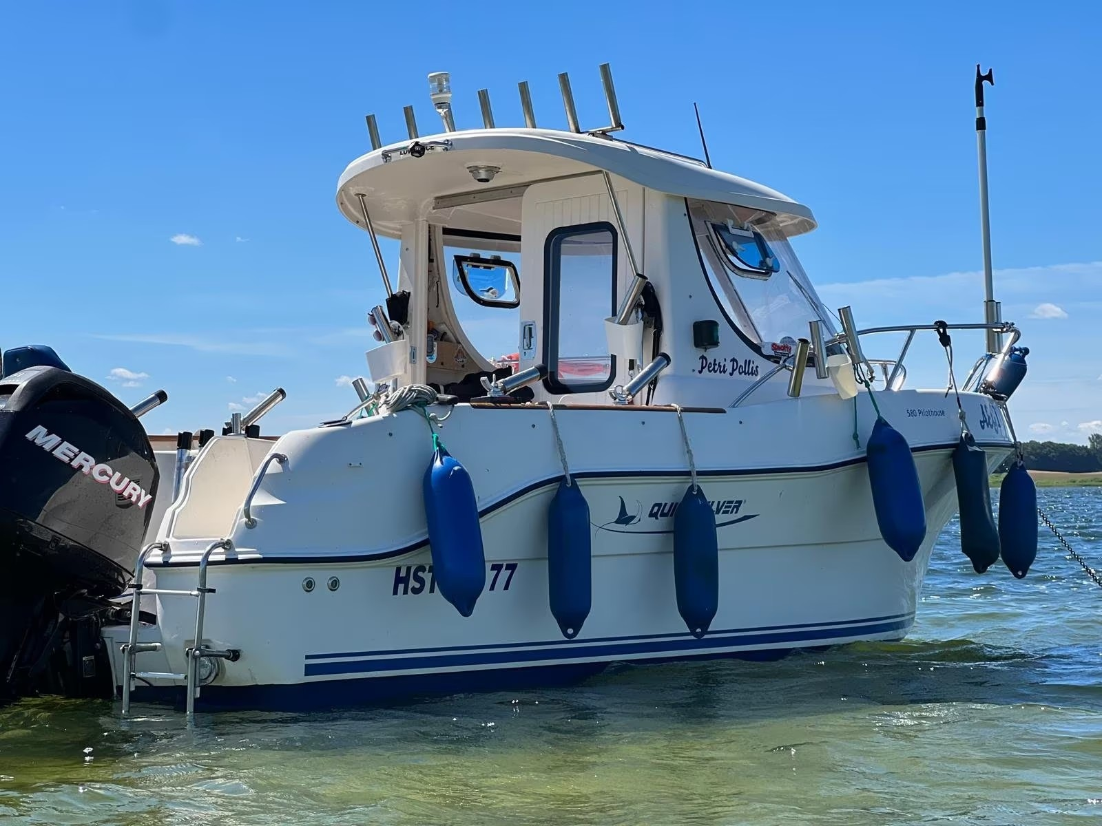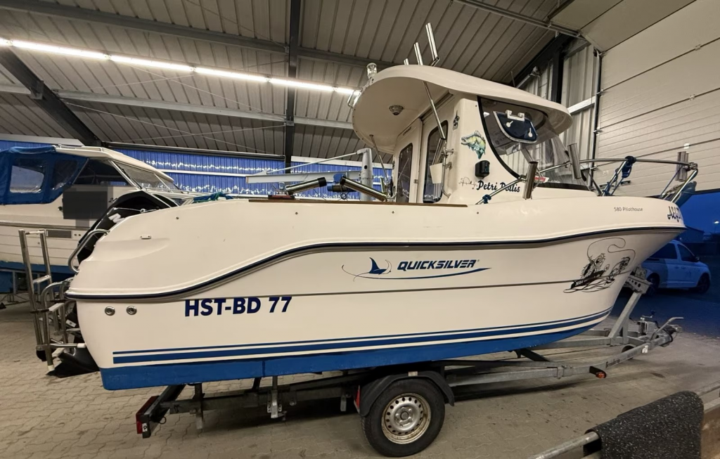 Verkauft wird im Kundenauftrag dieses Quicksilver 580 Pilothouse mit 115 PS Mercury Außenbordmotor (elektronische Einspritzung) und 1,5t Trailer von Brenderup.