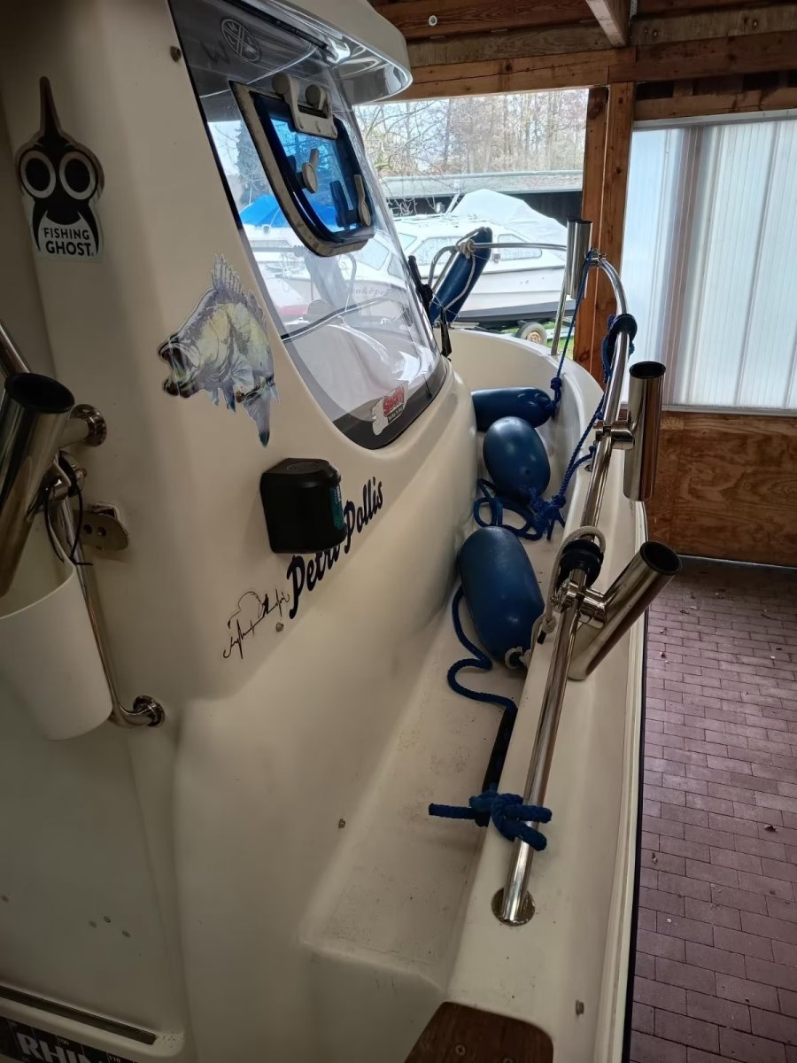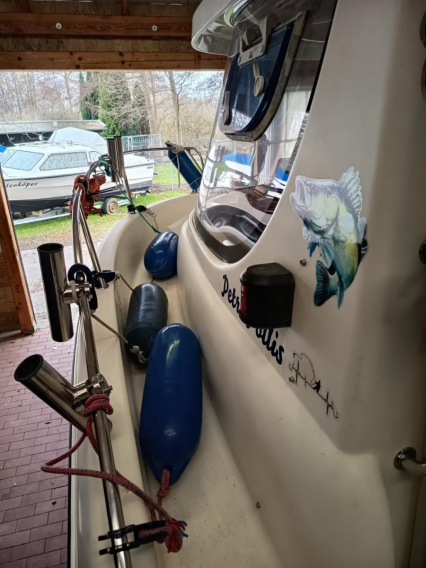 Das Boot ist kein Wasserlieger wurde nur zum Hecht-, Zander-, Barsch- und Karpfenangeln zu Wasser gelassen. In der Zwischenzeit stand es immer trocken in der Halle. Sommer und Winterlager. Dieser Platz kann auf Wunsch mit übernommen werden. Boot und Motor wurden nachweislich, regelmäßig gewartet. Der letzte Motorservice war im November 2025 - Anlasser 09/2022 neu - Impeller 12/2024 neu - Bootsbatterie 05/2024 neu.