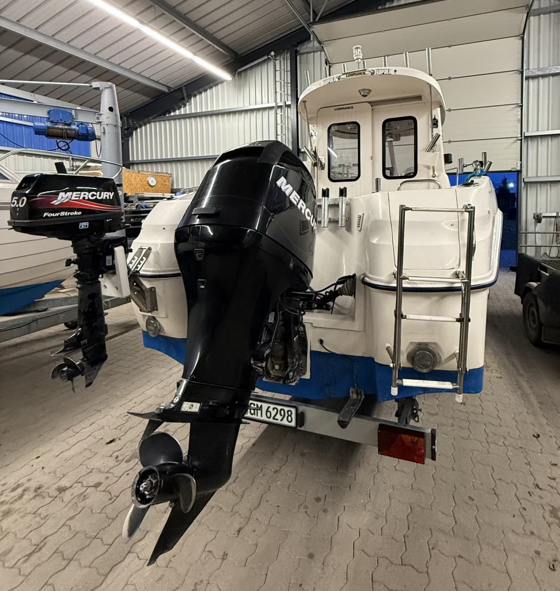 Dazu gibt es noch einen 5 PS Mercury als Hilfsmotor. Das Boot ist rauwassertauglich, ein modifiziertes Angel- und Trollingboot in sehr gepflegtem Zustand incl. dem aufgeführten Zubehör.