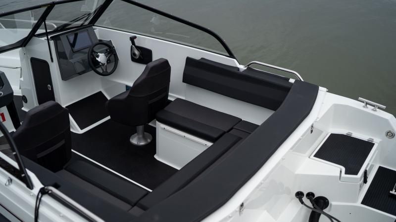 Das Cross 62 BR ist wie geschaffen, um die perfekten Sommertage mit der ganzen Familie zu genießen. Dieses Sieben-Personen-Boot ist äußerst praktisch, so dass Ausflüge zu beispielsweise natürlichen Häfen einfach und stressfrei zu machen sind. Der leicht zugängliche Bug des Bootes und die klaren Stufen machen es sicher beim Betreten des Bootes. Robuste und hohe Handlaufschienen tragen zu den Sicherheitsmerkmalen des Bootes bei und sind praktisch beim Anlegen. Diese Funktionen sorgen dafür, dass Sie Zeit haben, Ihr Bootfahren zu genießen!