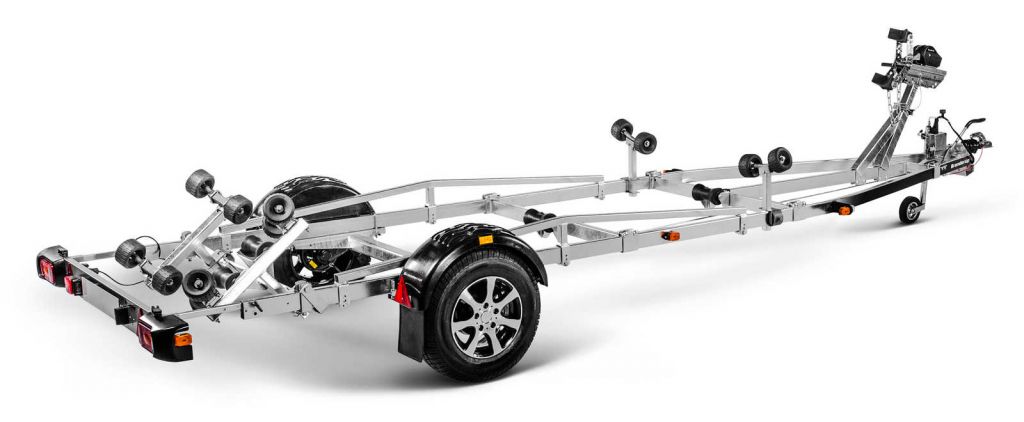 Unser gebremster Anhänger für Boote bis 18" ist mit einem V-förmig und verstärkten Chassis ausgestattet. Dies bietet Dir ein ausgezeichnetes Fahrverhalten. Das feuerverzinkte Chassis gewährt Deinem Boot eine lange Lebensdauer. Die elektrischen Leitungen sind im Inneren Deines Fahrgestell geschützt verlegt. Die wasserdichten Radlager mit rostfreien Bremsseilen aus Edelstahl sorgen für eine lange Lebensdauer. Die geschlossene Winde schützt vor Schmutz und Witterung. Der Windenstand ist leicht verstellbar und mit einer extra Sicherungskette ausgestattet. Die ausziehbare Lichtleiste wird mit Schnellverschlüssen arretiert und erleichtert den schnellen An- und Abbau. Mehrfach verstellbare Premium Super Rollen mit Soft-Top-Beschichtung. Die gezeigten Bilder dienen nur zur Illustration und können vom Original abweichen oder optionales Zubehör enthalten.