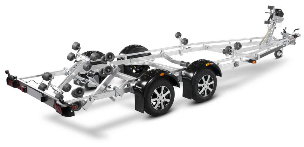 Unser gebremster Tandem-Anhänger für Boote bis 24" ist mit einem V-förmig geschweißten und verstärkten Chassis ausgestattet. Dies bietet Dir ein ausgezeichnetes Fahrverhalten. Das feuerverzinkte Chassis gewährt Deinem Boot eine lange Lebensdauer. Die elektrischen Leitungen sind im Inneren Deines Fahrgestell geschützt verlegt. Die wasserdichten Radlager mit rostfreien Bremsseilen aus Edelstahl sorgen für eine lange Lebensdauer. Die geschlossene Winde schützt vor Schmutz und Witterung. Der Windenstand ist leicht verstellbar und mit einer extra Sicherungskette ausgestattet. Die ausziehbare Lichtleiste wird mit Schnellverschlüssen arretiert und erleichtert den schnellen An- und Abbau. Die begehbaren Kotflügel bieten zusätzlich die Funktion eines Auftritts. Die gezeigten Bilder dienen nur zur Illustration und können vom Original abweichen oder optionales Zubehör enthalten.